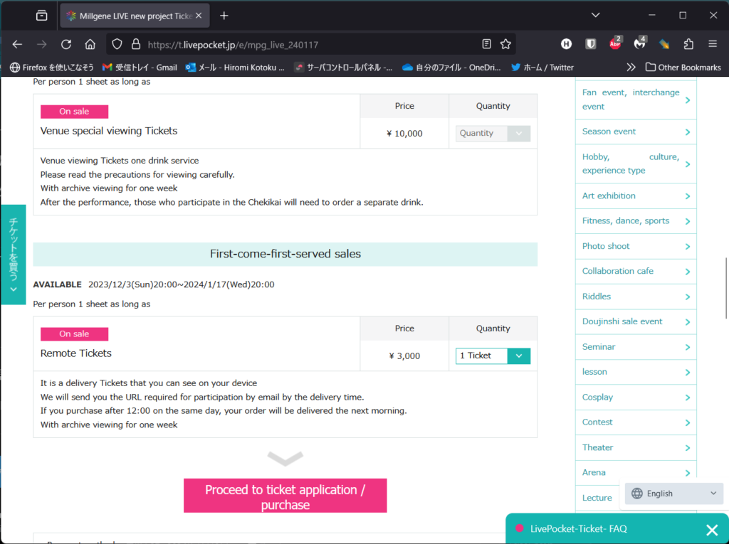 Remote ticket: ¥3,000