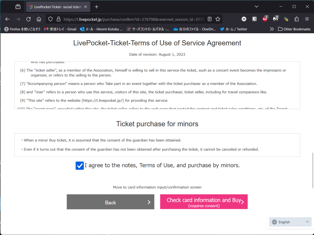 (Step 6) Register the desired credit card information on the payment method selection screen, check the Accept checkbox, and proceed with “Check card information and Buy.