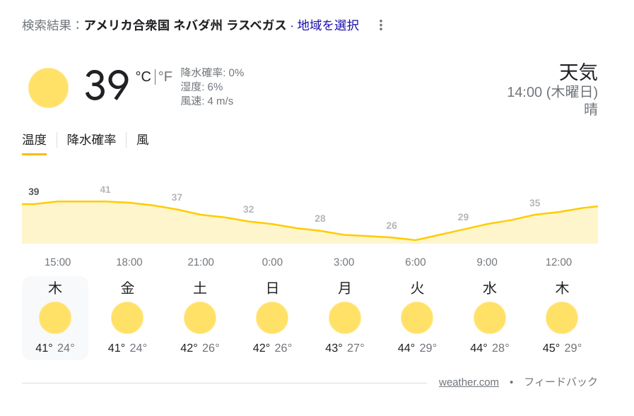 At July 5, 14:00 (PDT, Pacific Daylight Time), the temperature is 39 degrees Celsius, and it looks like it will be hot all week. This is not going to allow you to go outdoors.